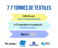 En collaboration avec le syndicat départemental (SMD3) et l’éco-organisme Refashion, le SICTOM vous attend le Mercredi 24 septembre, sur le parking couvert (à gauche de l’accès principal) du Leclerc de SARLAT la CANEDA, entre 9h et 12h.